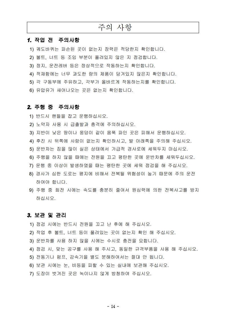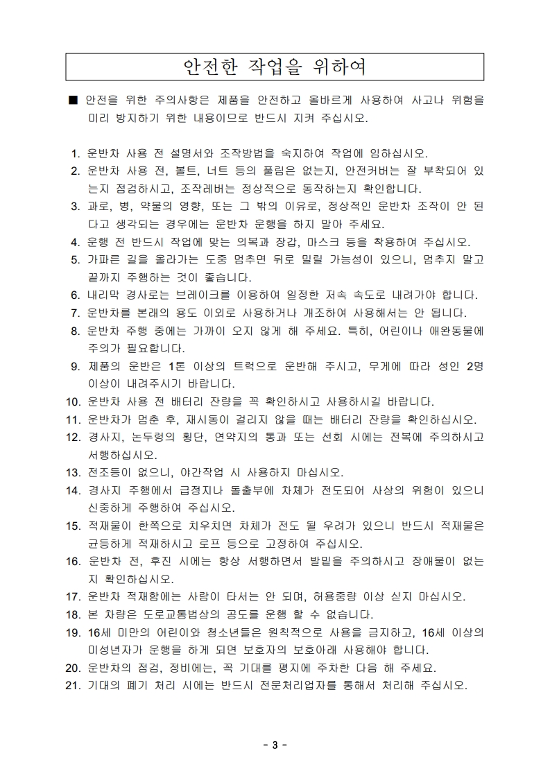 주식회사 네오_WK-2030E (동력운반차) 사용설명서